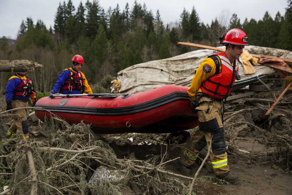 Controlling flooding in the search area continues to be a problem. Rainfall overnight Saturday caused water levels to increase as much as a half-foot in some places, said Meg Matthews, a spokeswoman for the Snohomish County Joint Operation Center. She said warmer, drier weather is forecast for this week, which should help.